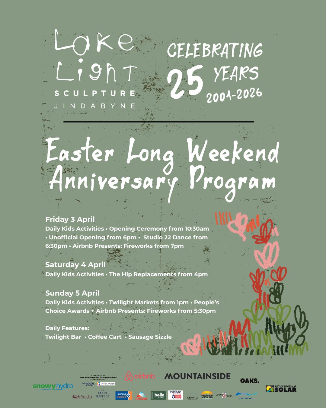 Set against the alpine backdrop of Lake Jindabyne, the festival continues to thrive thanks to the support of our sponsors, partners, and local community.